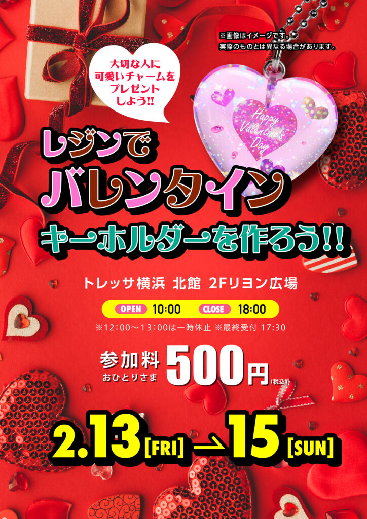 レジンを使ったワークショップを開催します。バレンタインをモチーフにしたチャームを作って、大切な人にプレゼントしよう♪