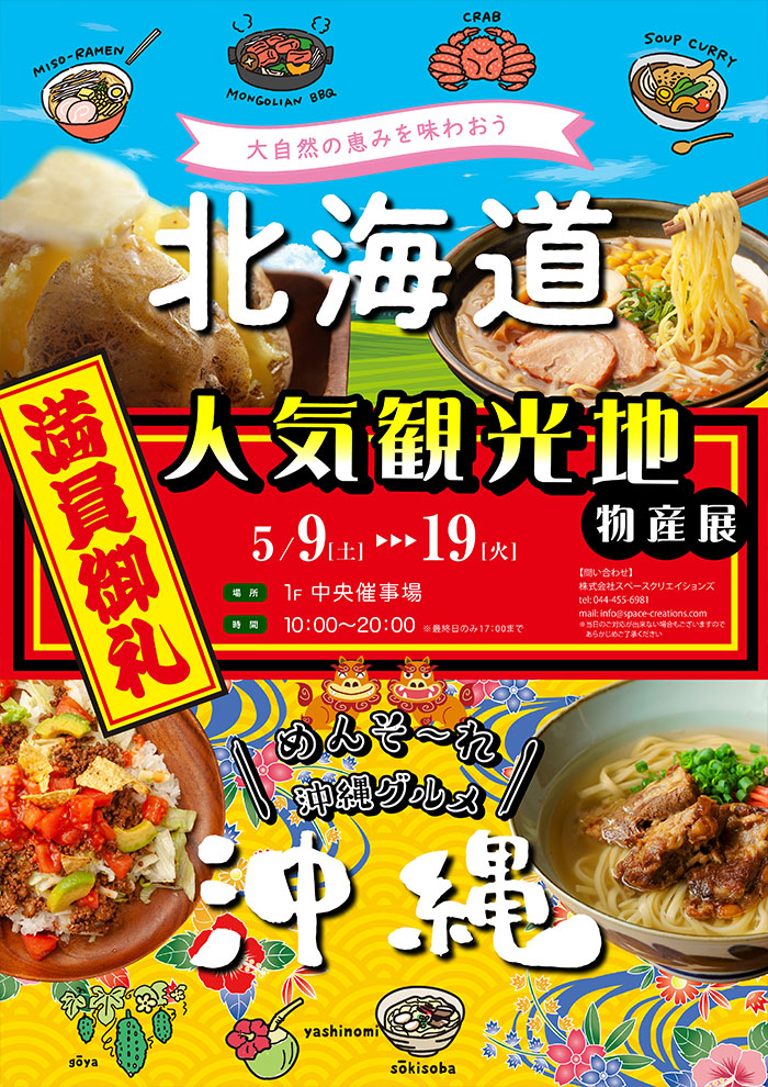 人気観光地「北海道・沖縄」の美味いものを集めた『南北物産展』を開催します。日本全国の美味しいものを堪能しよう!