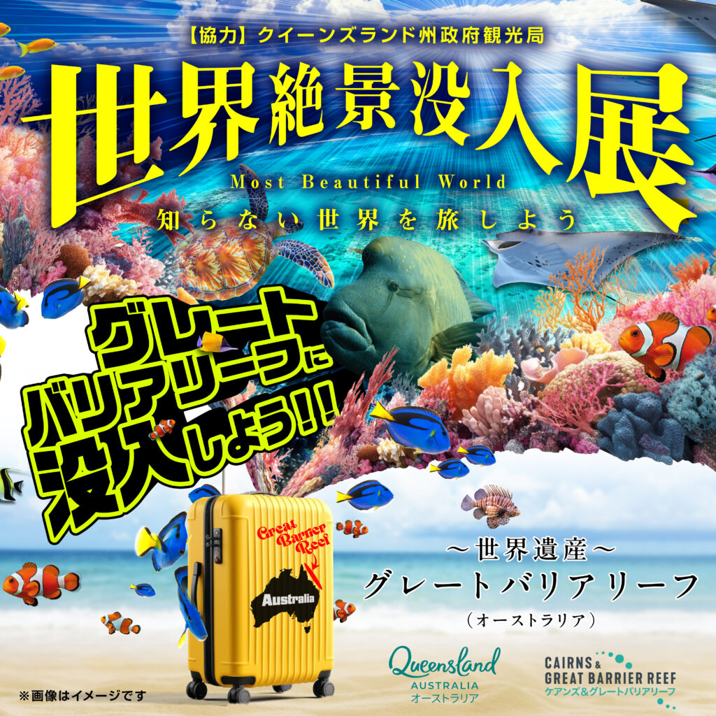 本展は、クイーンズランド州政府観光局の協力により、息を呑むような海の絶景をドームシアターやVRで再現。家族で楽しく学べる写真展や、謎解きクイズ。サンゴの白化現象を伝えるエデュテインメント(教育+娯楽)を通じ、地球環境の未来について考えるきっかけを提供します。